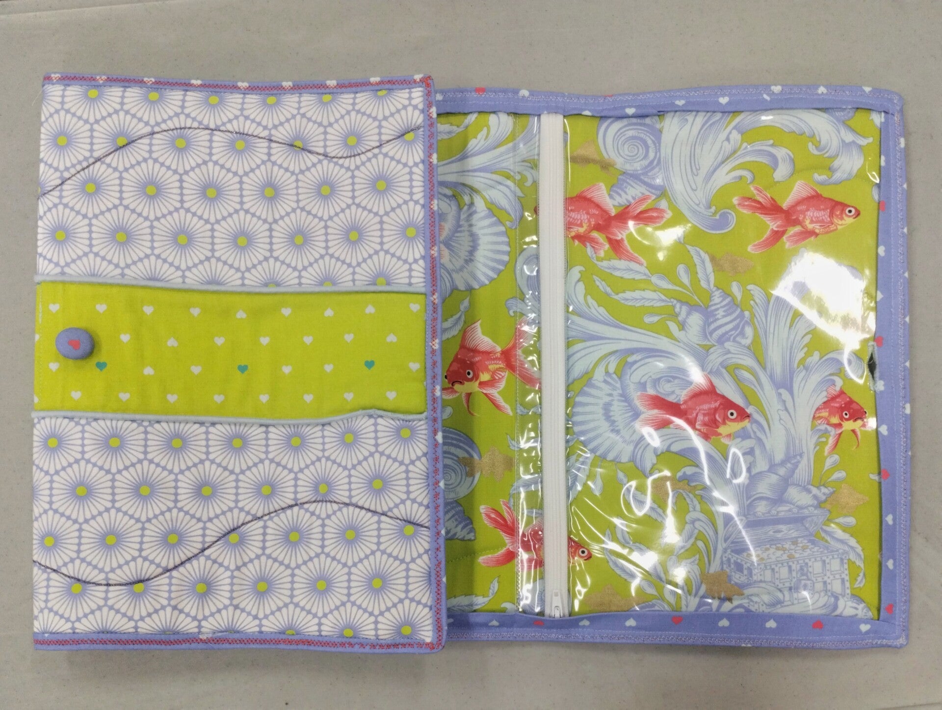 Machine embroidered and custom designed case for the card game Innovation