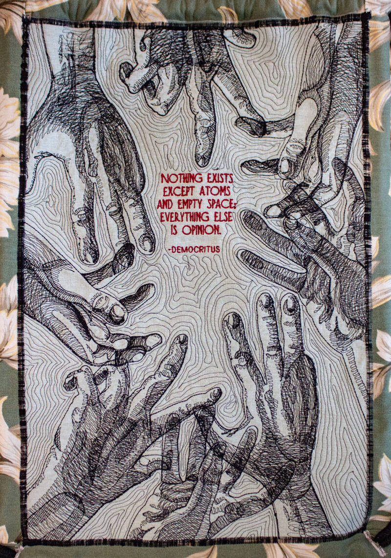 This mixed media piece started out as me trying to find a way to frame my large embroidered works. Read more about this project